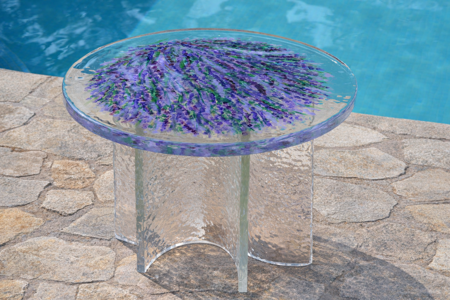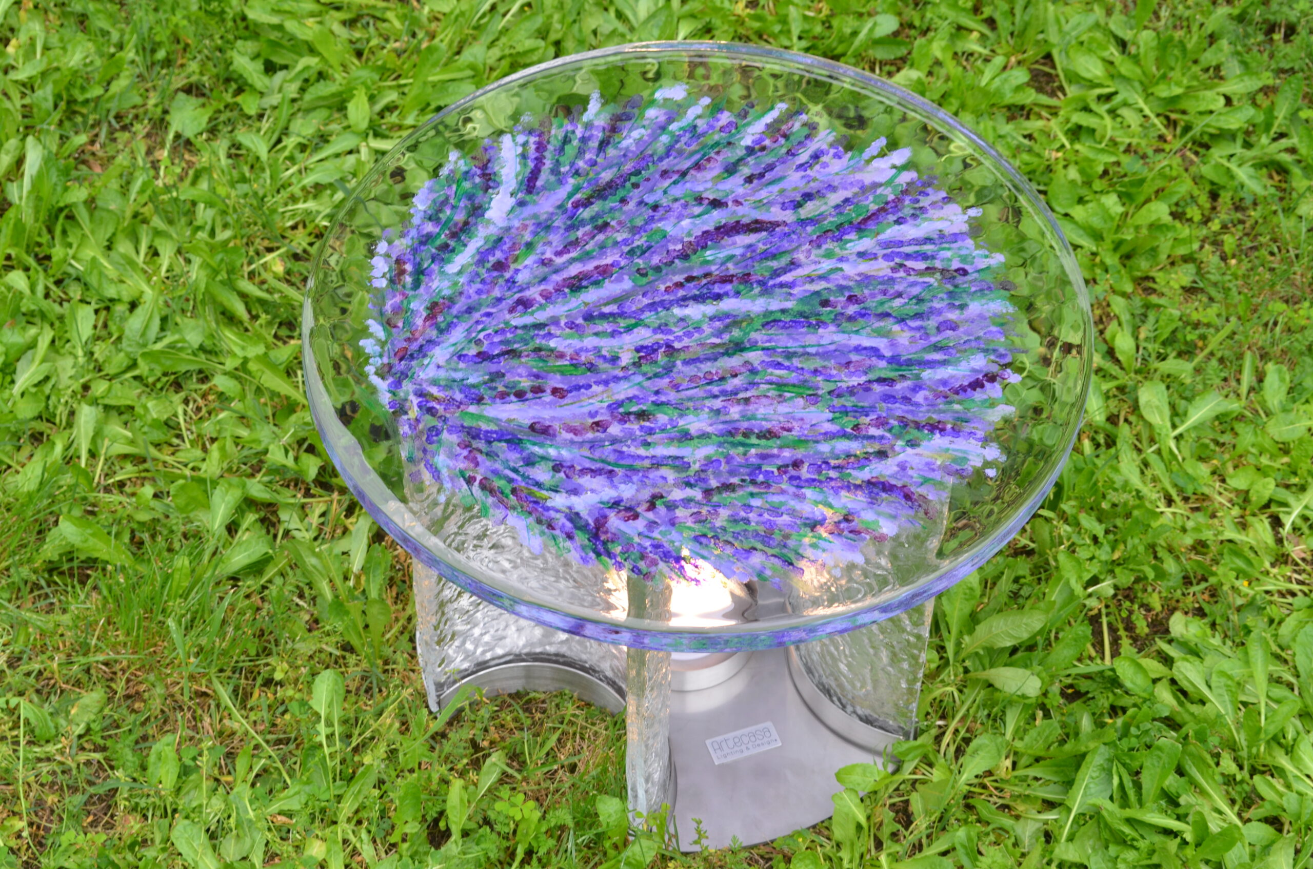 Pour nos tables basses cocktails en verre « Cristallino Martellato » , nous avons choisi des designs d’Art-Déco sophistiqués du classique vénitien, inspirés des traditions de Murano, avec des motifs floraux et des détails raffinés, parfaits pour une touche luxueuse. Ici nous vous présentons le modèle « La Provençale » avec les couleurs et parfums du Sud de la France.