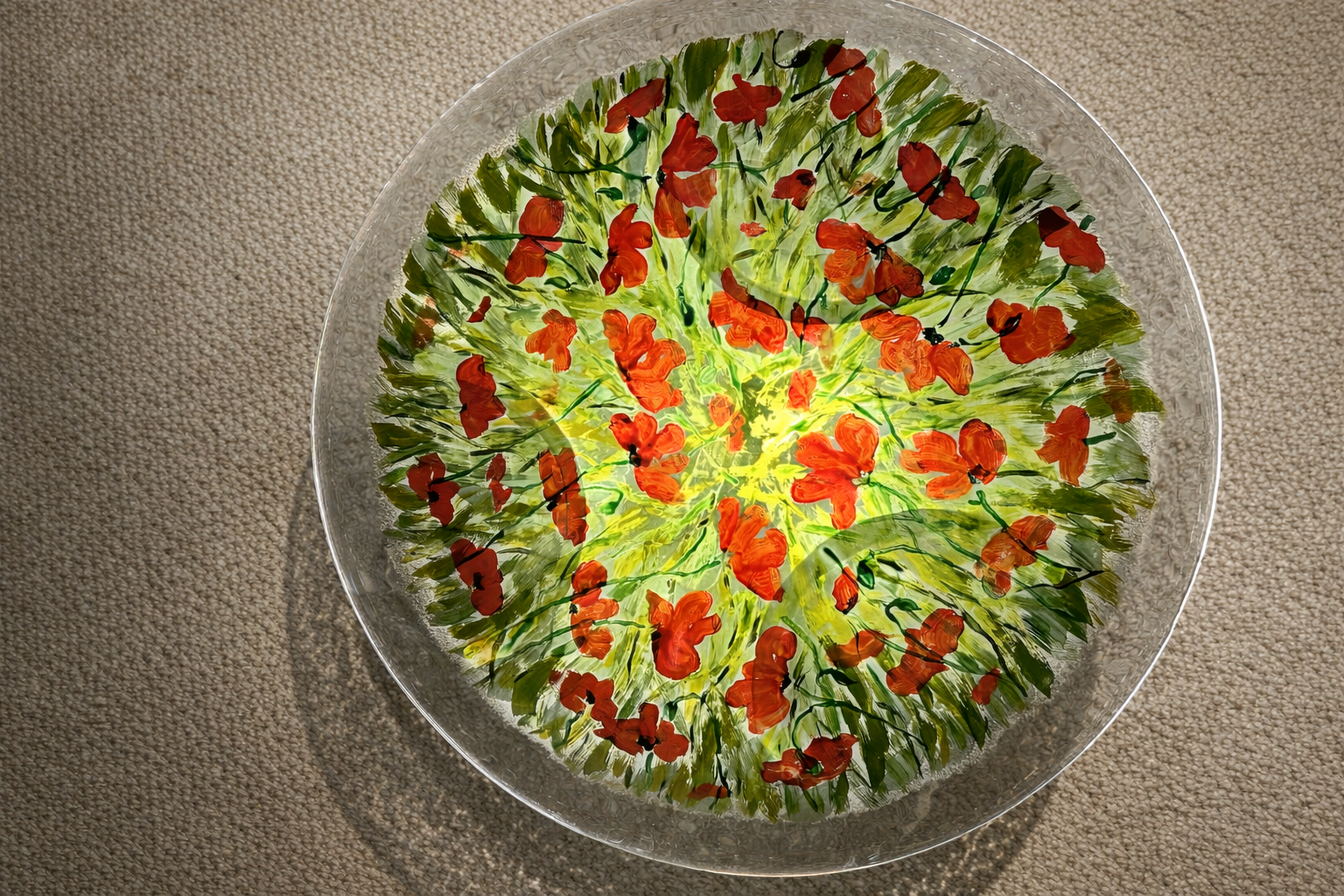 La peinture sur verre est une technique artistique fascinante qui permet de personnaliser votre table basse. Il existe plusieurs types de peintures adaptées au verre. Nous utilisons des couleurs acryliques spéciales, sans cuisson, conçues pour résister au quotidien. Cette peinture assure l’adhérence du motif figuratif que vous avez choisi et que la lumière intégrée va mettre en valeur.